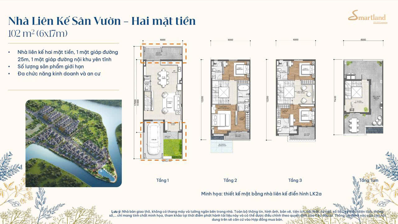 Quy mô: 226 căn thấp tầng (Nhà phố, Biệt thự Song lập, Biệt thự Đơn lập, Biệt thự Tứ lập)